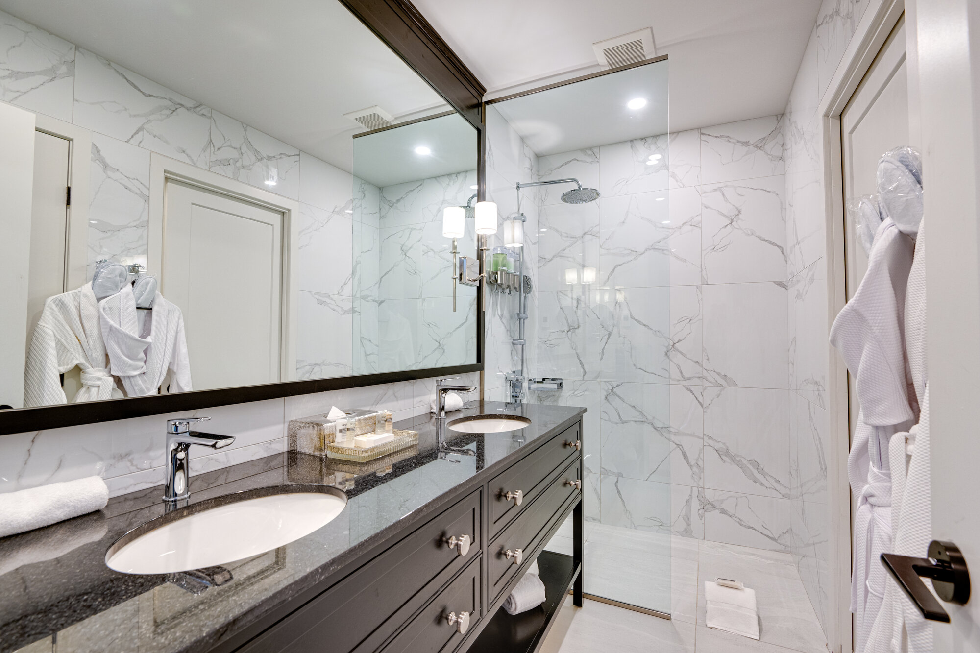 The Prestige 1 suite is equipped with two bedrooms (closed or semi-closed) with king size beds, a queen size sofa bed, a balcony overlooking Lake Massawippi, a full kitchen, a fireplace, a bathroom with shower and a washer and dryer.